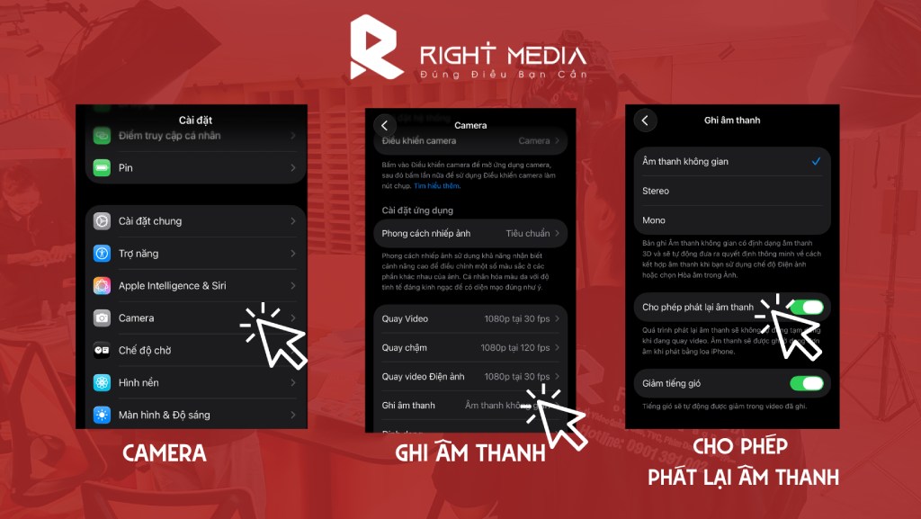 - Đối với iPhone, người dùng chỉ cần vào Cài đặt → Camera → Ghi lại âm thanh → Cho phép phát lại âm thanh là có thể mở khoá tính năng này