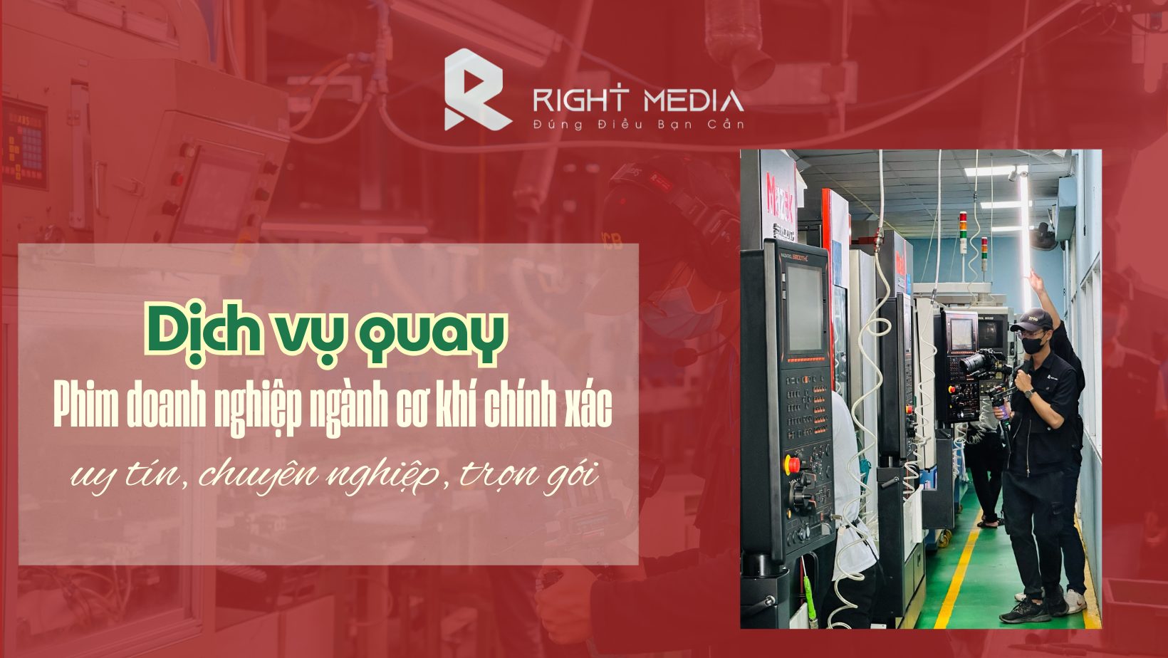 Trong bối cảnh cạnh tranh ngày càng cao, việc đầu tư hình ảnh thương hiệu chuyên nghiệp trở thành yếu tố quan trọng giúp doanh nghiệp có lợi thế so với các đơn vị cùng ngành. Với kinh nghiệm thực hiện nhiều dự án trong môi trường nhà máy, Right Media tin rằng dịch vụ quay phim doanh nghiệp cơ khí chính xác do ekip sản xuất sẽ góp phần thể hiện rõ năng lực sản xuất, nâng cao vị thế thương hiệu và tạo thêm nhiều cơ hội kết nối với khách hàng, đối tác trong và ngoài nước.