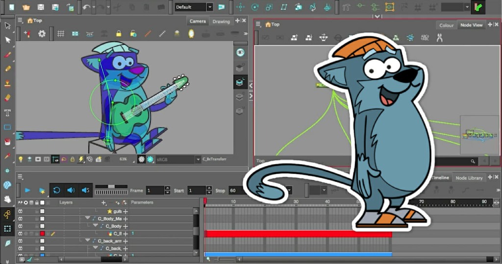 Nếu bạn đã có nền tảng kiến thức, kỹ thuật và muốn thử sức với các phần mềm làm phim hoạt hình chuyên nghiệp hơn thì có thể tìm hiểu về Toon Boom Harmony. Đây là phần mềm được sử dụng rộng rãi trong các studio lớn và ngành công nghiệp phim hoạt hình. Ưu điểm của Toon Boom Harmony là hỗ trợ nhiều phong cách từ hoạt hình vẽ tay truyền thống, cut-out đến rigging (tọ khung giúp nhân vật chuyển động linh hoạt) nâng cao với khả năng kiểm soát chuyển động và biểu cảm rất chi tiết.