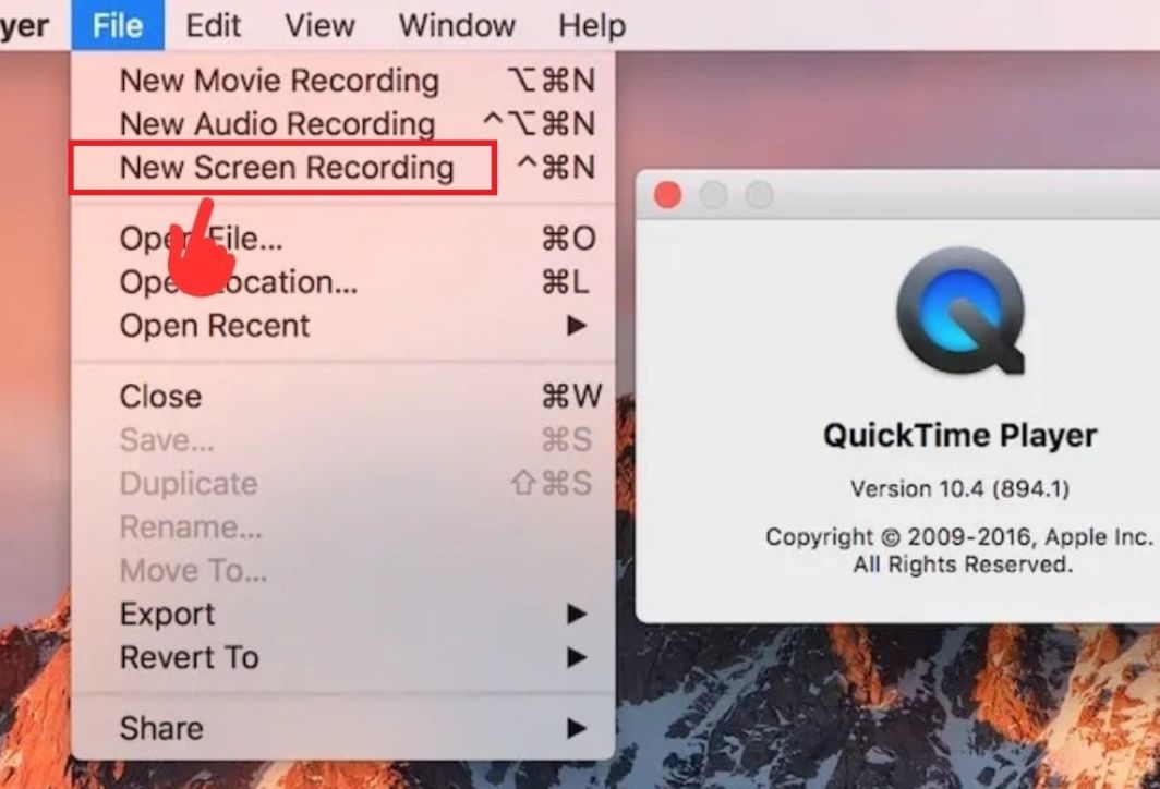 - Chọn File > New Screen Recording.